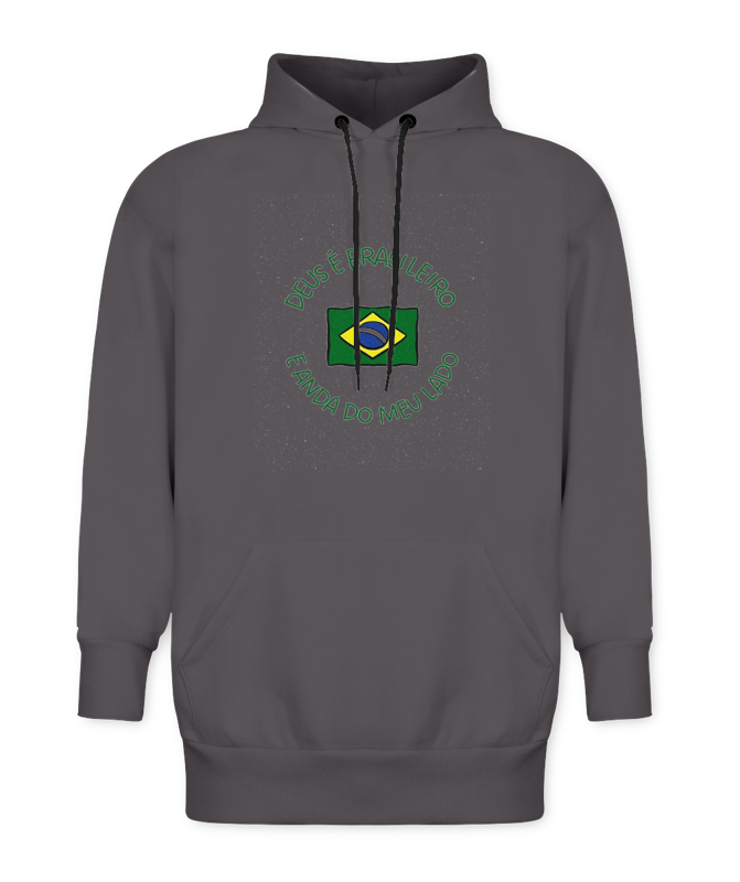 Uma frente minimalista, mas com muita presença. O símbolo central traz a bandeira em destaque, reforçando identidade, fé e orgulho nacional em uma composição simples, direta e marcante. O tipo de arte que conversa com quem gosta de vestir mensagem, estilo e personalidade sem exagero.