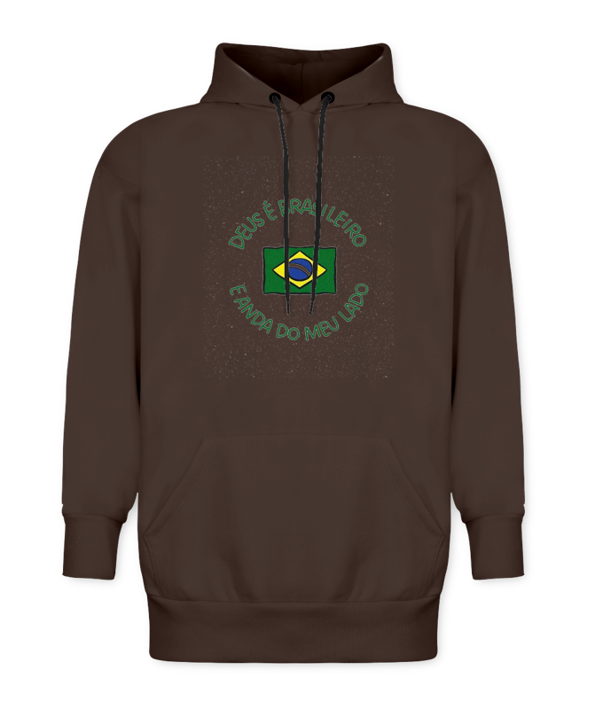 Uma frente minimalista, mas com muita presença. O símbolo central traz a bandeira em destaque, reforçando identidade, fé e orgulho nacional em uma composição simples, direta e marcante. O tipo de arte que conversa com quem gosta de vestir mensagem, estilo e personalidade sem exagero.