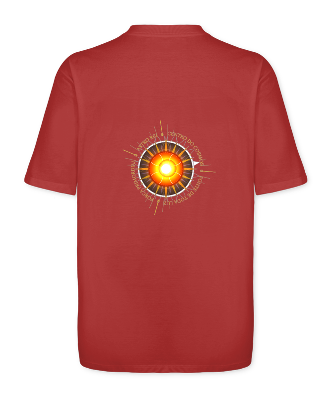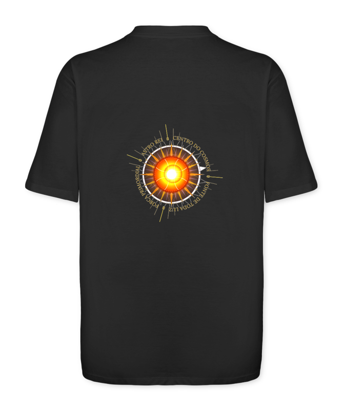 Astro Rei é uma estampa que nasce como um centro de energia e presença, como se a luz tivesse encontrado forma dentro da roupa. Em tons de branco, rosa, laranja, vermelho e verde, ela carrega uma estética viva, poética e intensa, misturando calor, harmonia e força em uma imagem que parece pulsar no peito de quem veste.